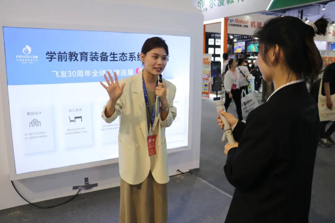 在展会现场,飞友学前教育装备研究院院长林炎琴接受了采访。通过林院长的讲述大家了解到,飞友教研院通过研究儿童、研究玩具,打造了一个专业的成果孵化平台,为产品的研发设计注入了幼教思维理念。