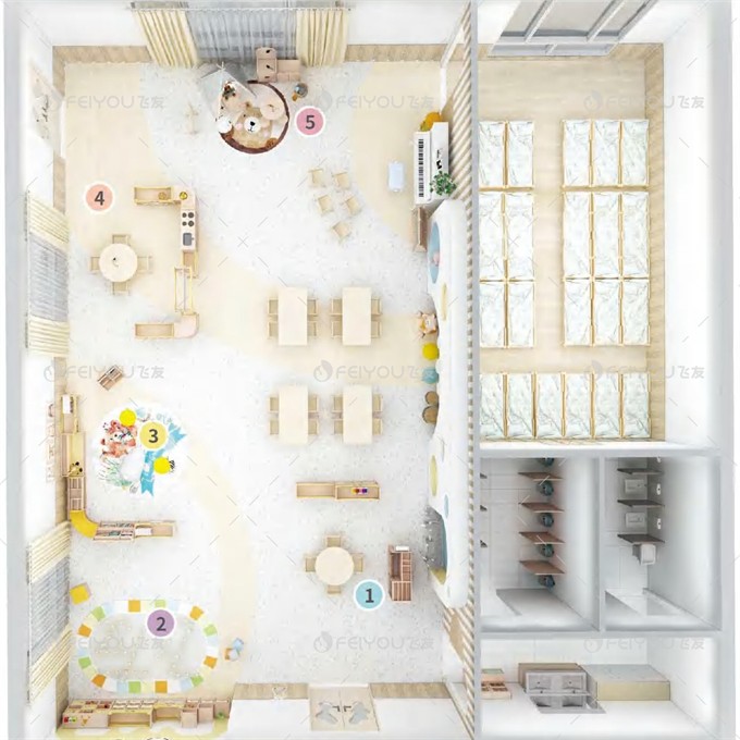 针对不同的主题教室,三种色系可以自由搭配,让教室变成了洋溢的梦幻世界。