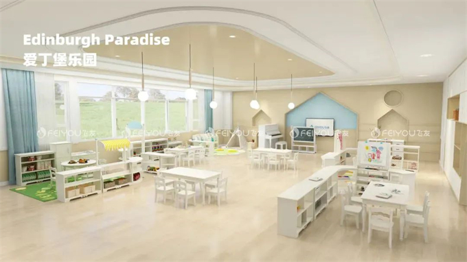 你听,缪斯的孩子在嬉戏……在我们的爱丁堡乐园里,充满着艺术的气息,孩子们仿佛置身于艺术的殿堂,系列整体风格简约清新,也更加明亮。幼儿园环境对于孩子的审美能力是潜移默化的,爱丁堡乐园是属于孩子们的艺术王国。