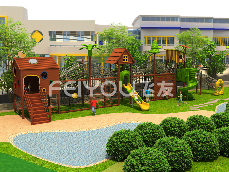 FY296-03景区小孩子木制组合滑梯-游乐园儿童木质游乐设施