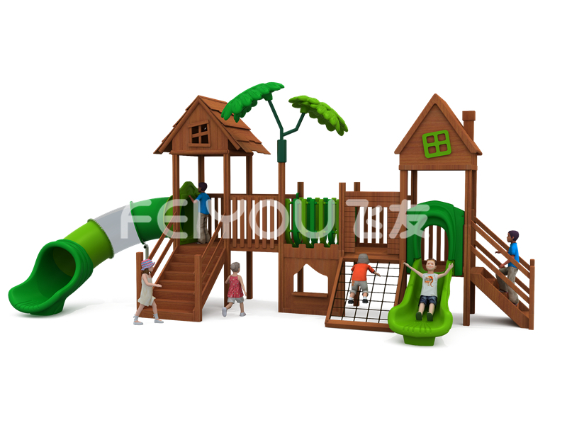 FY296-01景区儿童木质组合滑梯-公园小朋友实木游乐设施