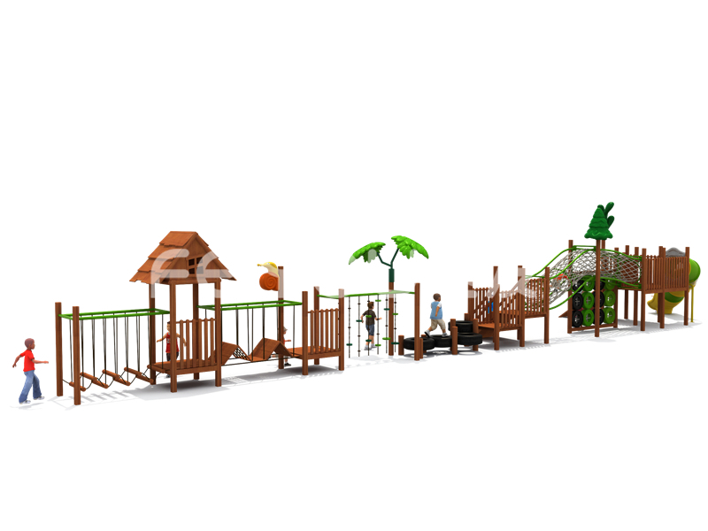 FY294-01酒店无动力实木滑滑梯-小区幼儿木制游乐设备