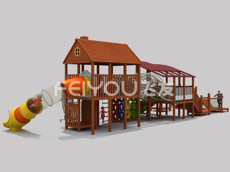 FY293-02幼儿园中班大型木制组合滑梯-户外幼儿木质游乐设施