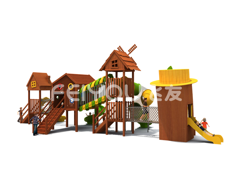 FY291-01幼儿园中班小孩子实木滑梯-小区无动力木质组合滑梯