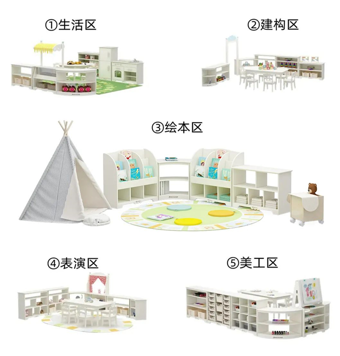 孩子们在不同的区角,能够进行各种不同的学习生活,可以展开无尽的想象,不断创造。