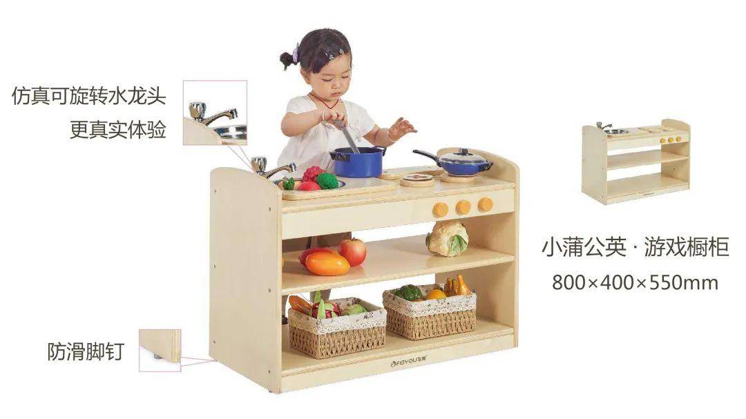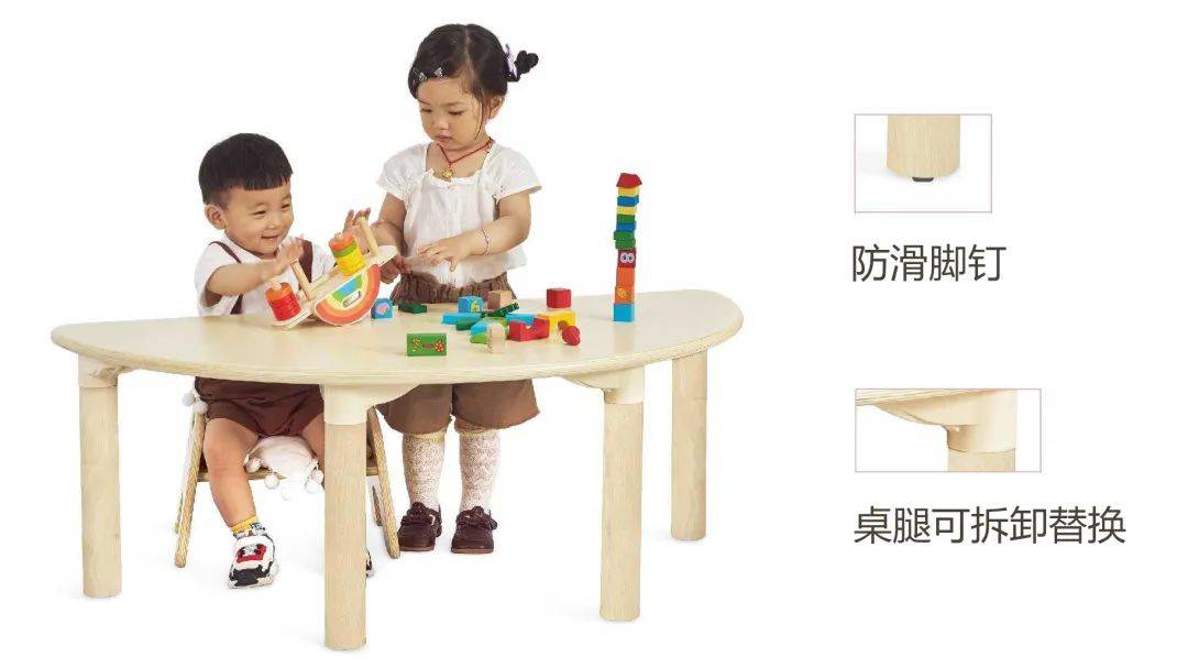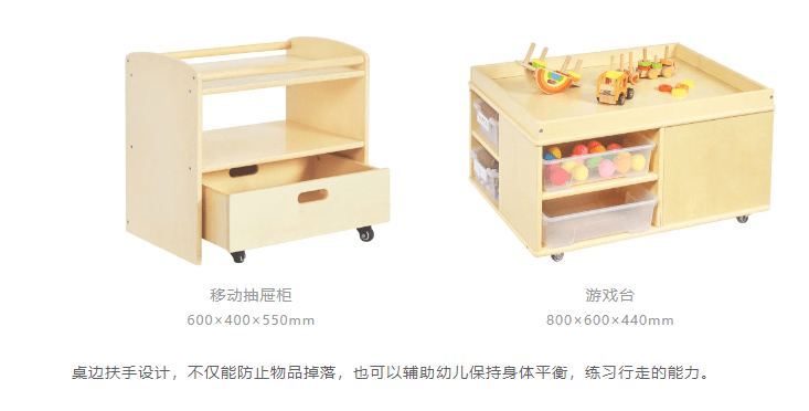 桌边扶手设计,不仅能防止物品掉落,也可以辅助幼儿保持身体平衡,练习行走的能力。