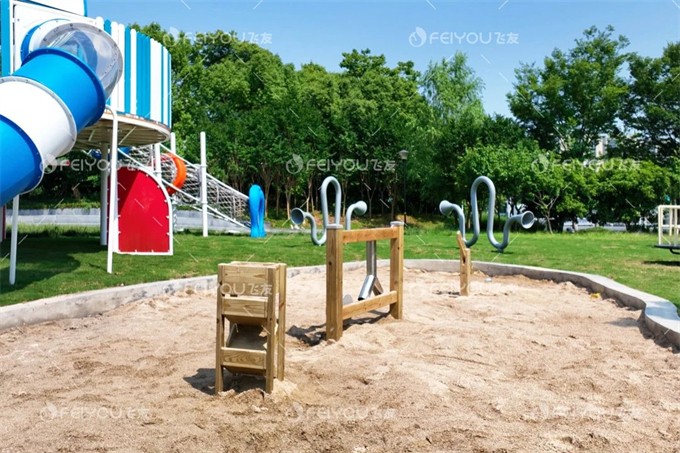 小小沙池,大大乐趣。场地规划了沙池区域,可以让小朋友真切地感受玩沙的乐趣,并锻炼发展幼儿手腕精细动作。