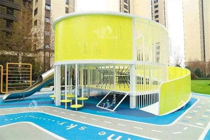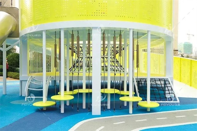 从细节着手,提升趣味感,让平台内的滑梯、爬网、过道都与整体相互呼应,自然和谐。